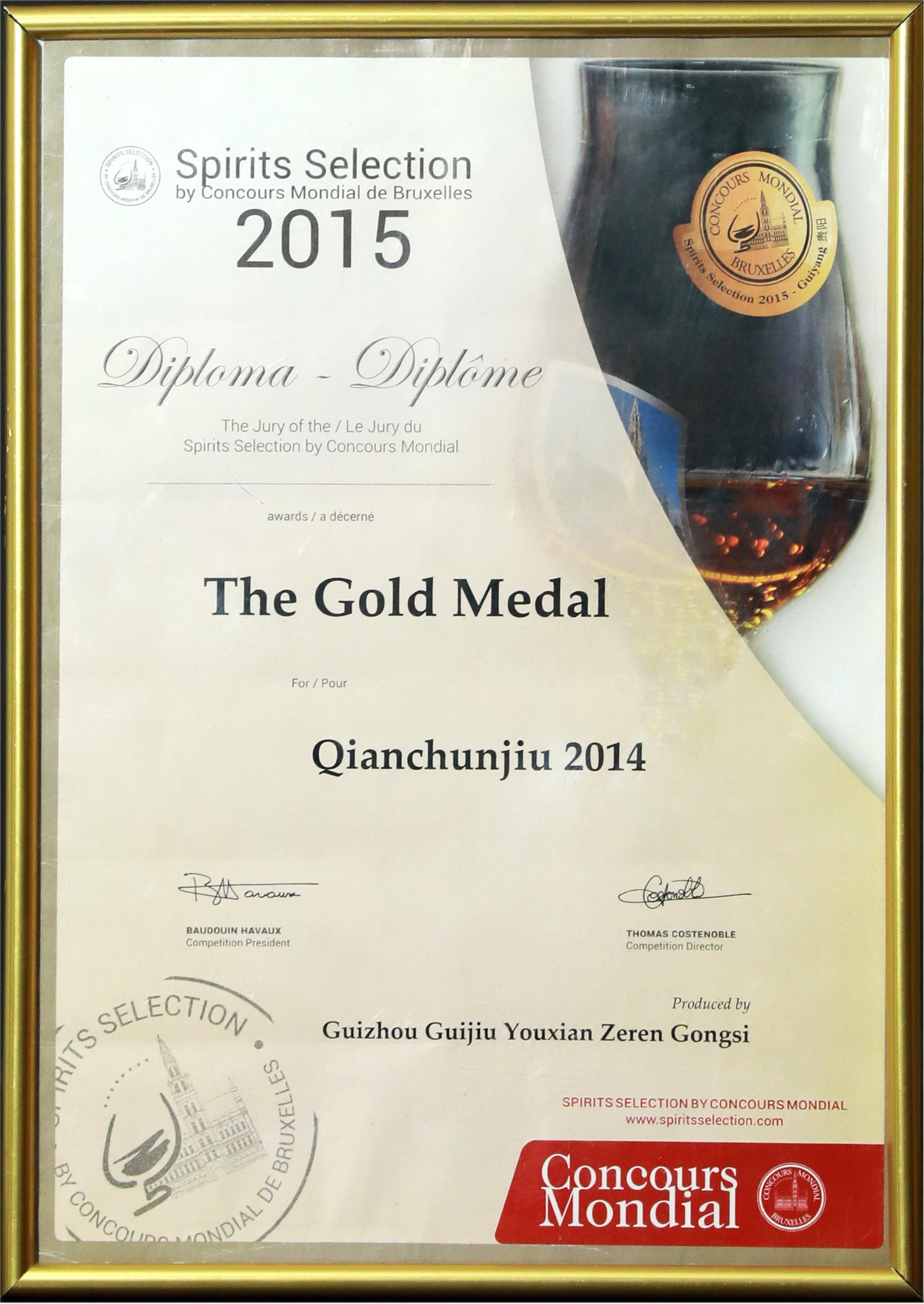 黔春酒——2015年布鲁塞尔烈酒大赛金奖