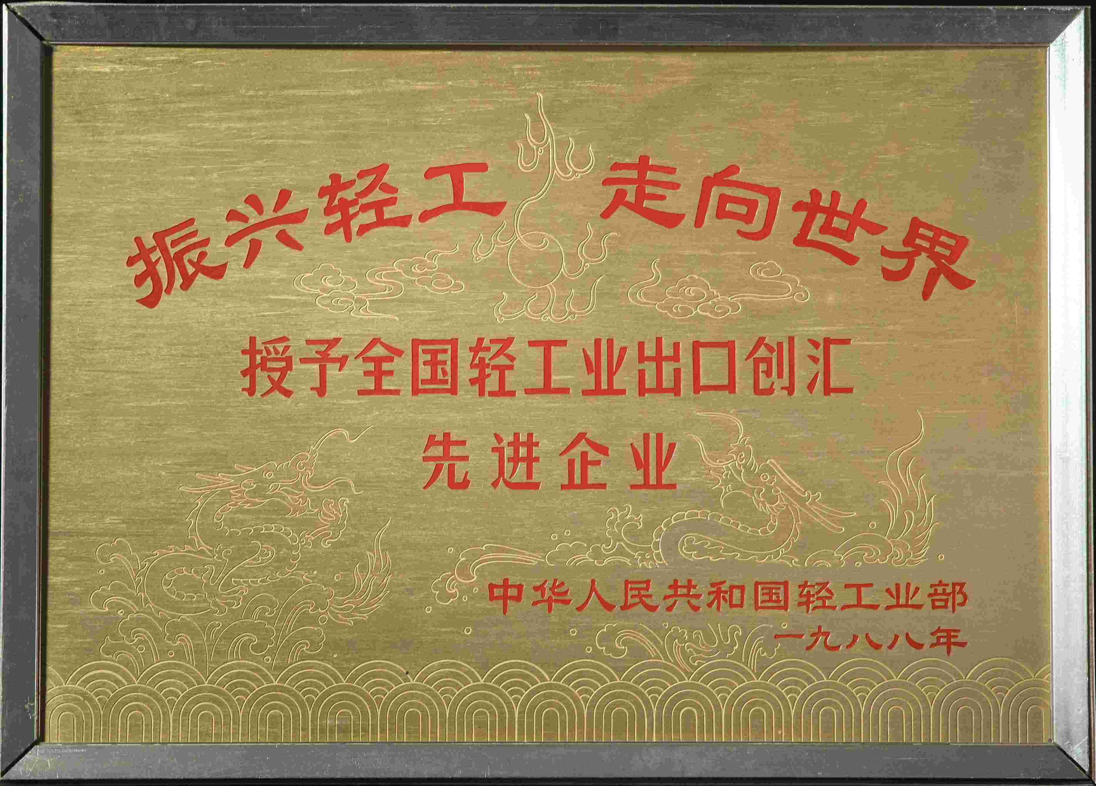 1988年全国轻工业出口创汇“先进企业”