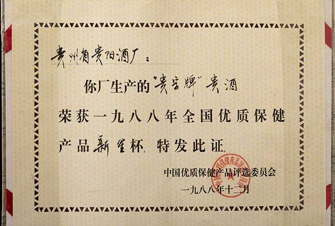 “贵字牌”0638太阳集团官网——1988年全国优质保健产品《新星杯》