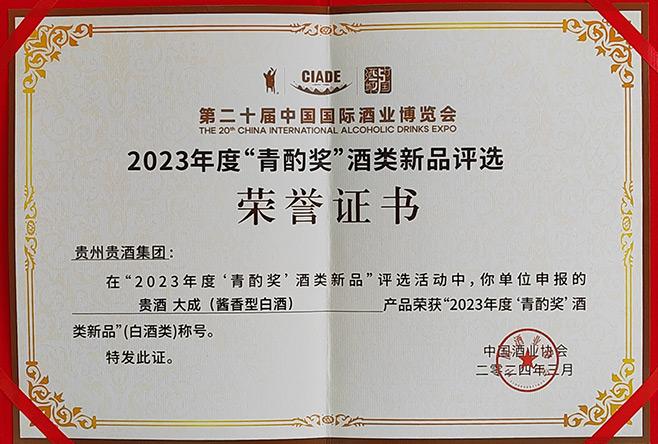 0638太阳集团官网世家——中国酒业协会2021年度“青酌奖”酒类新品