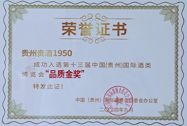 1950大成、百坊—第十三届中国(贵州)国际酒类博览会“品质金奖”